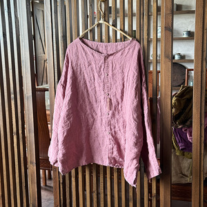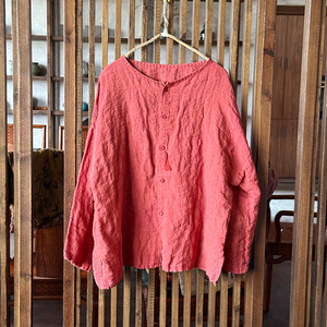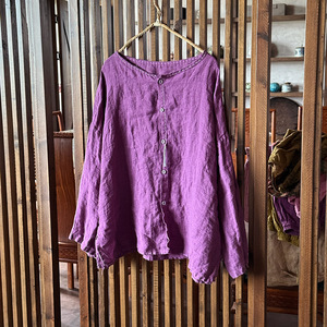 261大きいサイズの砂洗いのまばらな亜麻の手作りの刺繍のカーディガンは服を洗って高品質のカジュアルなシャツの婦人服を洗います。