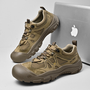 クロスボーダー人気の男性用スポーツシューズ 2025 新しいメッシュ通気性アウトドアハイキングシューズ男性包頭滑り止め大きいサイズの男性の靴