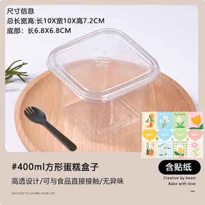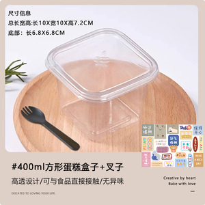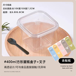 400ml 厚みのある四角いボックス + 白い楕円形のステッカー + フォークセット。