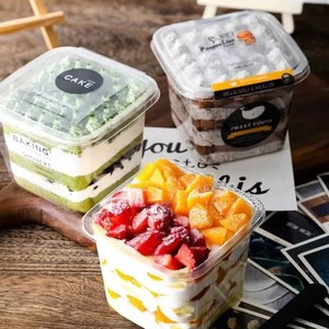 ティラミス包装箱、小さなデザート包装箱、千層ムースケーキ包装箱、使い捨て透明木ぬかカップ