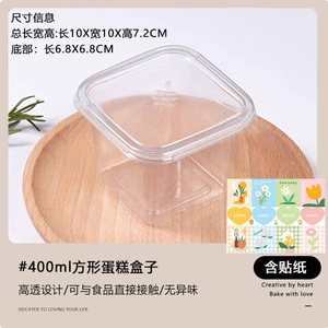 400mlの厚みのある四角いボックス+楕円形のステッカーのセット。