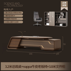 【珍稀胡桃木】3.2米总裁桌+nappa牛皮老板椅
