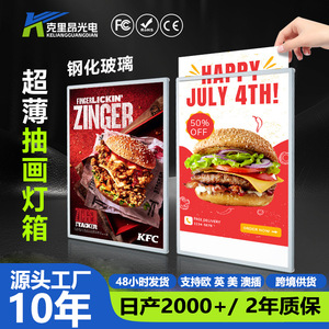 超薄型ライトボックス看板 LED発光壁掛け強化ガラスサイン絵画広告ライトボックスケータリングディスプレイ