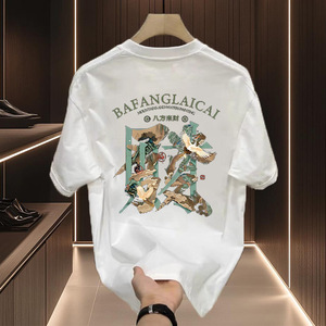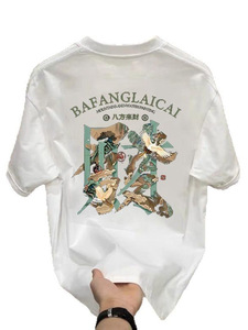 ヨーロッパファッションブランドライトラグジュアリーメンズ半袖Tシャツサマーフォーチュンプリントハイエンドラウンドネック半袖Tシャツ