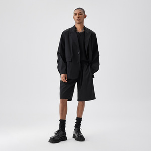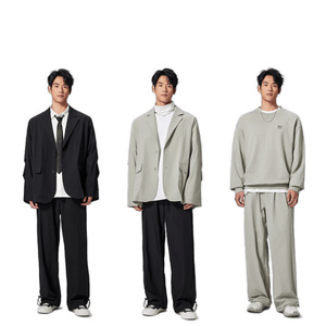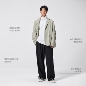 松弛感西装防泼水休闲西服男宽松褶皱外套/西裤套装