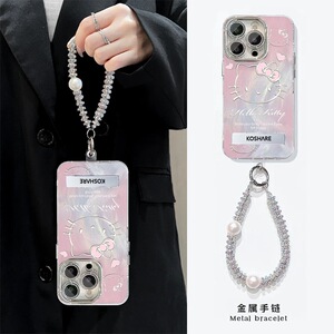 ピンクktはアップル16羽糸携帯ケースiphone15スタンド全包14銀色手紐13高級感を適用している