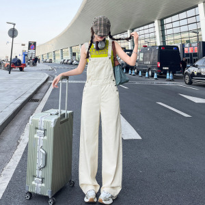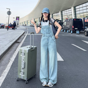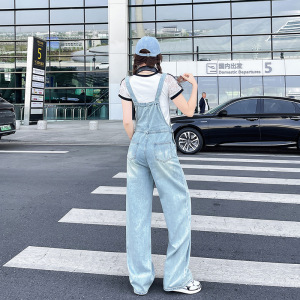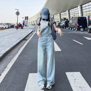 アメリカンハイストリートデニムオーバーオール女性の夏の2025新しいルーズレトロハイウエストストレートレッグワイドレッグパンツ小柄な人向け