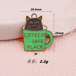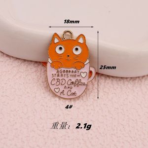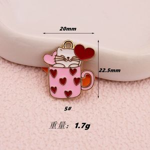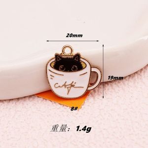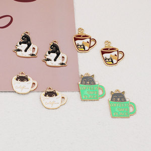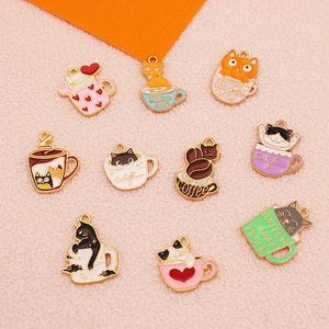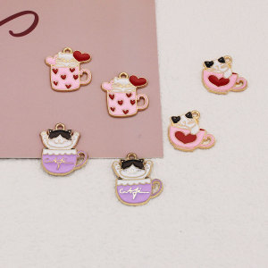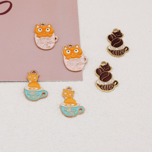 漫画のコップのイヤリングDIYの愛の猫のコーヒーカップの猫の耳飾りのキーホルダーの部品DIYのアクセサリ