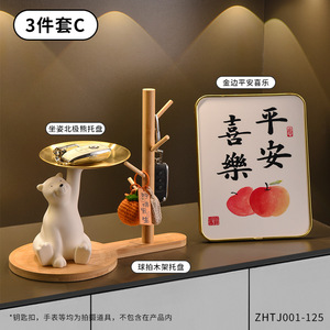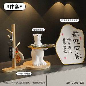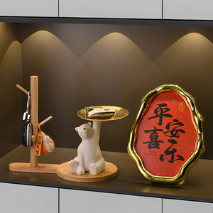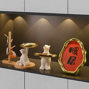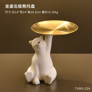 クリエイティブ漫画ホッキョクグマトレイ収納置物ホームリビングルーム书斎玄関収納装飾品動物置物