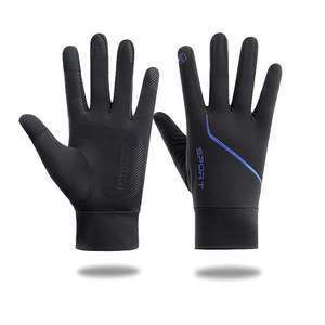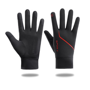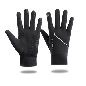 夏の薄い自転車手袋男性日焼け止め紫外線滑り止めタッチパネル通気運転釣り氷糸手袋