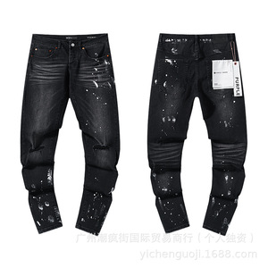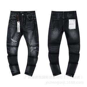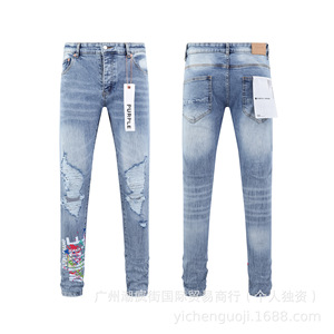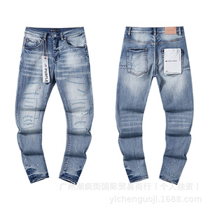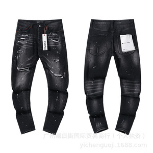 クロスボーダーヨーロッパとアメリカのパープルブランドストレートジーンズウォッシュレトロリッピングハンサムアメリカンコレクション