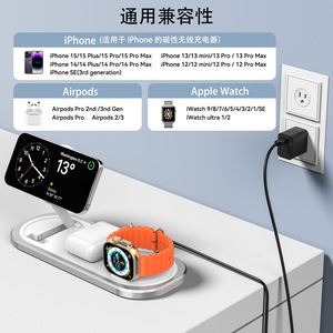新しい折りたたみ式スリーインワンワイヤレス充電器携帯電話ワイヤレス高速充電スタンド時計ヘッドフォン充電器