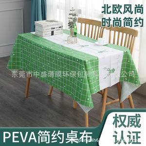 グリーンの模様のPEVAテーブルクロス