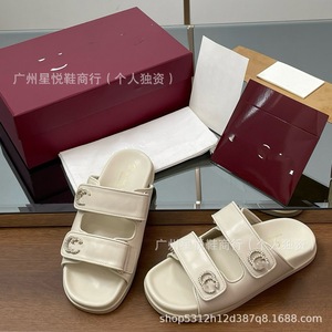 G ファミリーレザー 3D エンボスビーチサンダル 2025 春夏サンダル大きいサイズライト高級メタルバックルラインストーン婦人靴