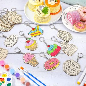 クロスボーダー子供用デザートキーホルダー手作り木製工芸品サマーアートドーナツパーティーギフト