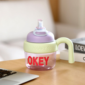夏季情侣吸管大肚杯可爱造型大容量学生杯新款把手塑料潮流杯