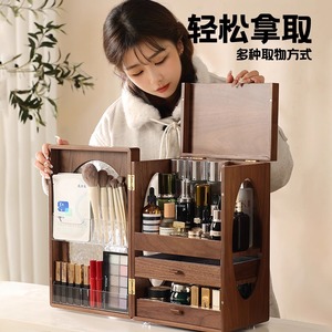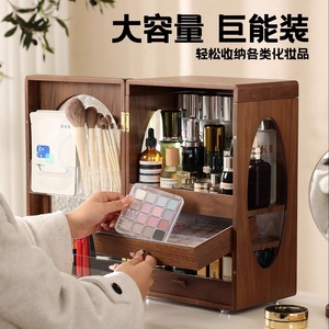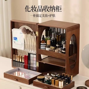 黒胡桃実木製大容量多層デスクトップ引き出し付きキャビネット高級感新中国式化粧品収納キャビネット