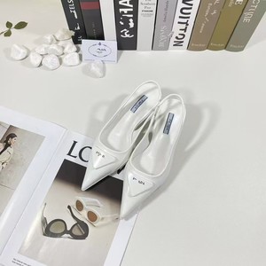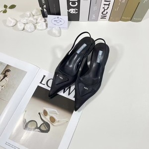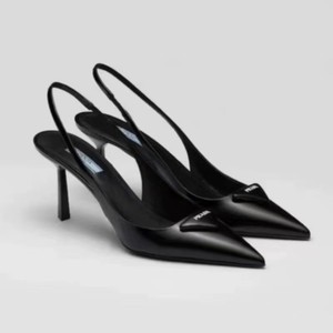 夏季欧美P家高版本皮革徽标尖头猫跟高跟鞋7.5/3cm跟高