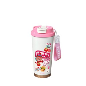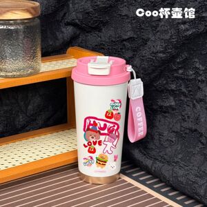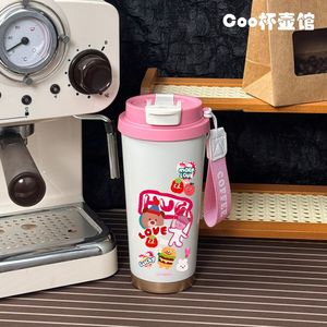 ピンクの漫画魔法瓶カップ、パーソナライズされたシンプルでポータブルな女の子用蓋付き大容量韓国風日本カップイン大容量