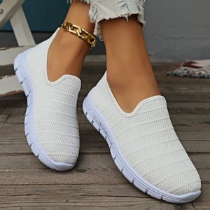 2025 夏の新ヨーロッパとアメリカの貿易無地カジュアルシューズスリッポンフラットシューズ通気性と軽量大型フライニットシューズ