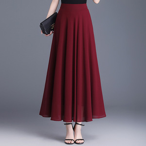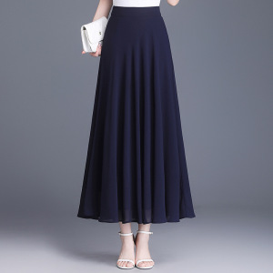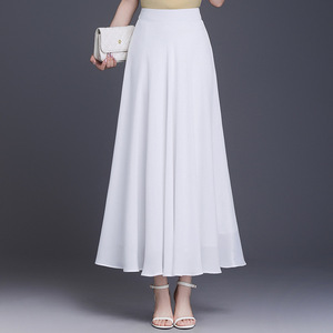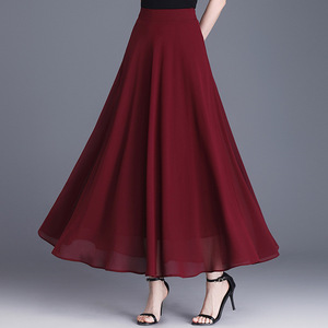 薄いタイプのシフォンのA字の半身のスカートの女性の2025年の夏の新型の韓国版の高い腰の百のタックの大きい振り子は中のロングスカートをつなぎ合わせます。