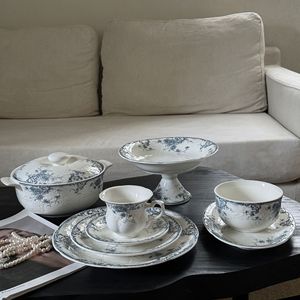 レトロなフランス式レリーフレース純白レースセラミック食器カップ高足盤中古重工シリーズ