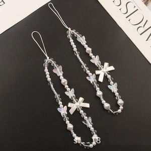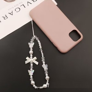 Ins風携帯電話のストラップの短いデザインの創意的な蝶結びの白い模造真珠のストラップの部品のバッグの装飾ccdのストラップ