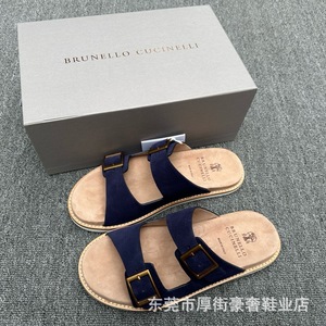 新しい夏の男の靴のファッションのカジュアルなコルクのスエードの顔の上の層の牛革の砂浜の涼しいモップの博ケンは掛けて快適なスリッパを掛けます。