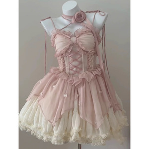 ピンクの優しいバレエ風ロリータドレス JSKドレス フラワーウェディングロリータ逃走ふわふわプリンセスドレス妖精