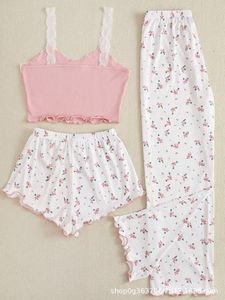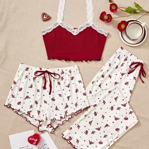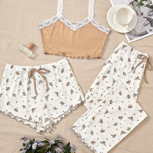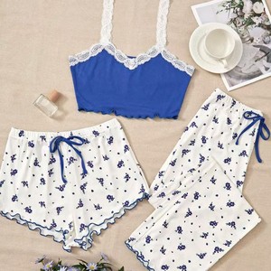 欧美跨境家居服蕾丝吊带短裤套装舒适弹力居家休闲可外穿家居服女