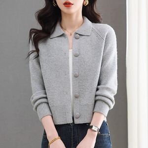 女性のためのラペルニットカーディガンジャケット 2025 新しいルーズショートスタイルの小さなアウターファッショナブルなセータージャケット