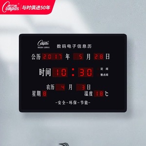 コーパスLEDデジタル万年暦電子時計掛け時計客間創意静音電子時計カレンダー時計夜光