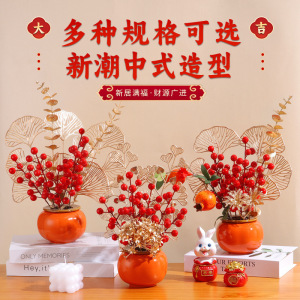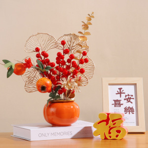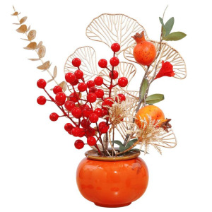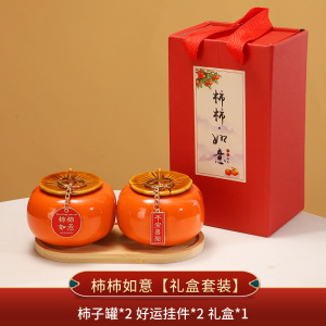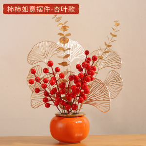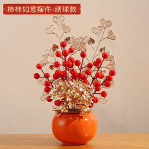 柿柿如意金運飾り赤い果実陶器万事如意柿飾り新築祝い引っ越しギフト
