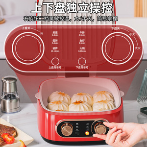 Monda多機能料理鍋家庭用取り外し可能な電気餅の段は電気鍋の焼き焼き蒸しを深めます。