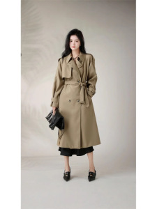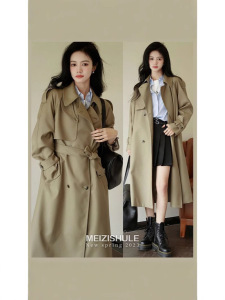 2024年中長サイズのレトロなトレンチコートの女性春秋韓系のゆったりした小さいスーツの襟のコートのコート