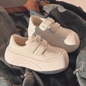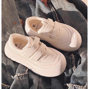 大きい頭のカジュアルな白い靴の女性2025新型の春の学生の大衆は板の靴のマジックを高く上げて厚い底のパンの靴を貼ります。