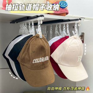 Y 帽子収納スライドトラックプッシュプルベビーソックスホームワードローブトップマウント伸縮式プルコートと帽子クリップフック