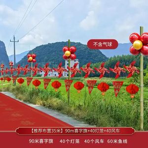 カラフルな旗結婚式の道路シーンのレイアウト結婚式の装飾ランタン田舎の庭の結婚式用品風車ハッピーワード屋外