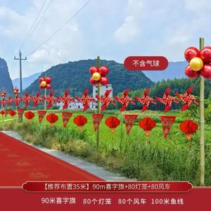 ハッピーフラッグ 90m 個 + ランタン 80 個 + 風車 80 個 [レイアウト 35m]