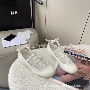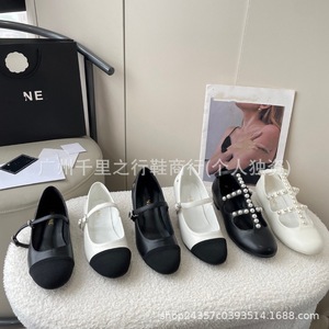 ハイバージョン C レターフレンチレトロパールメリージェーン 2025 初春シングルシューズレディースラウンドトゥ浅い口フラット小さな革靴