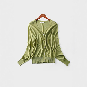 新意法夏空调衫冰丝长袖防晒衫女士单排扣气质针织开衫毛衣M6088