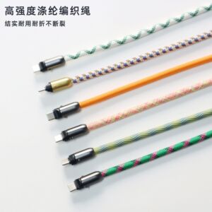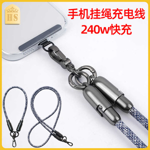 充電携帯電話ストラップ [ダブル Type-c] - 麻グレー ロング スタイル