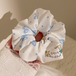 2025春夏新作清新蝶結び波点大腸髪輪高弾力頭縄髪飾りブルー系少女