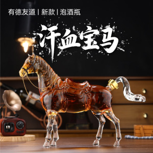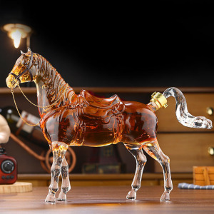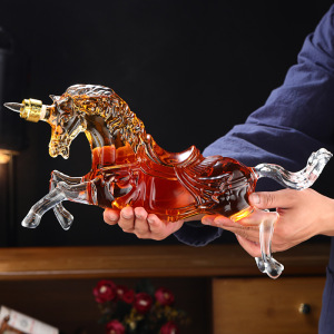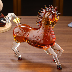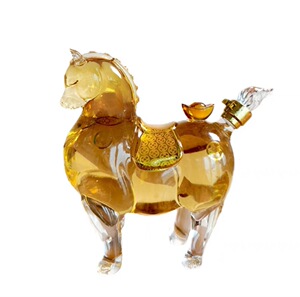 新商品の馬の形のお酒のガラス瓶を厚くしてお酒を浸します。