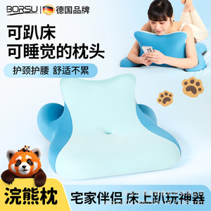 ベッドの上で寝て枕をしてベッドの神器の多機能の腹臥位の枕をして寝ています。