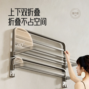 ガンアッシュバスタオルラックタオルラック折りたたみ式パンチフリーバスルームバスルームトイレ収納ラック壁掛けバスルームアクセサリー