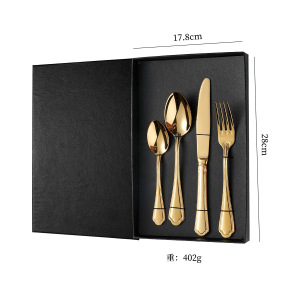 ゴールド-[テーブルナイフ+テーブルフォーク+テーブルスプーン+ティースプーン] 24個入りギフトボックス