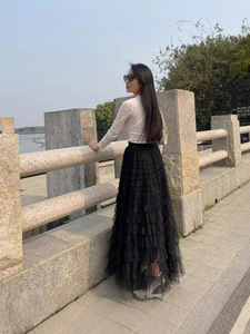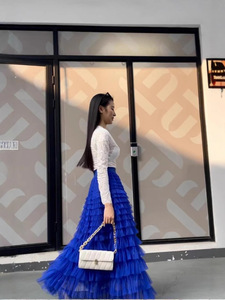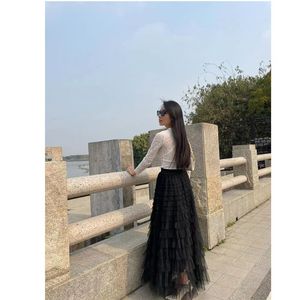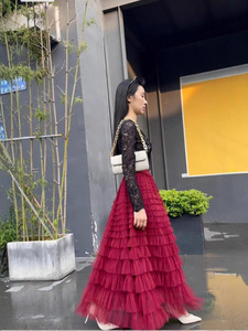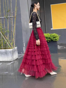 多用途の妖精のような気質のフリルメッシュ多層スカート、スリムでヒップをカバーする女性用のレディースケーキロングスカート