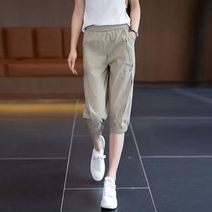 2025 新しい速乾性カジュアルパンツ女性のための小さな大きいサイズ夏薄いアイスシルクレギンス作業着クロップドパンツ