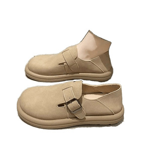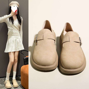 软皮勃肯鞋女2025懒人宽头两穿平底鞋一脚蹬豆豆鞋女复古百搭单鞋